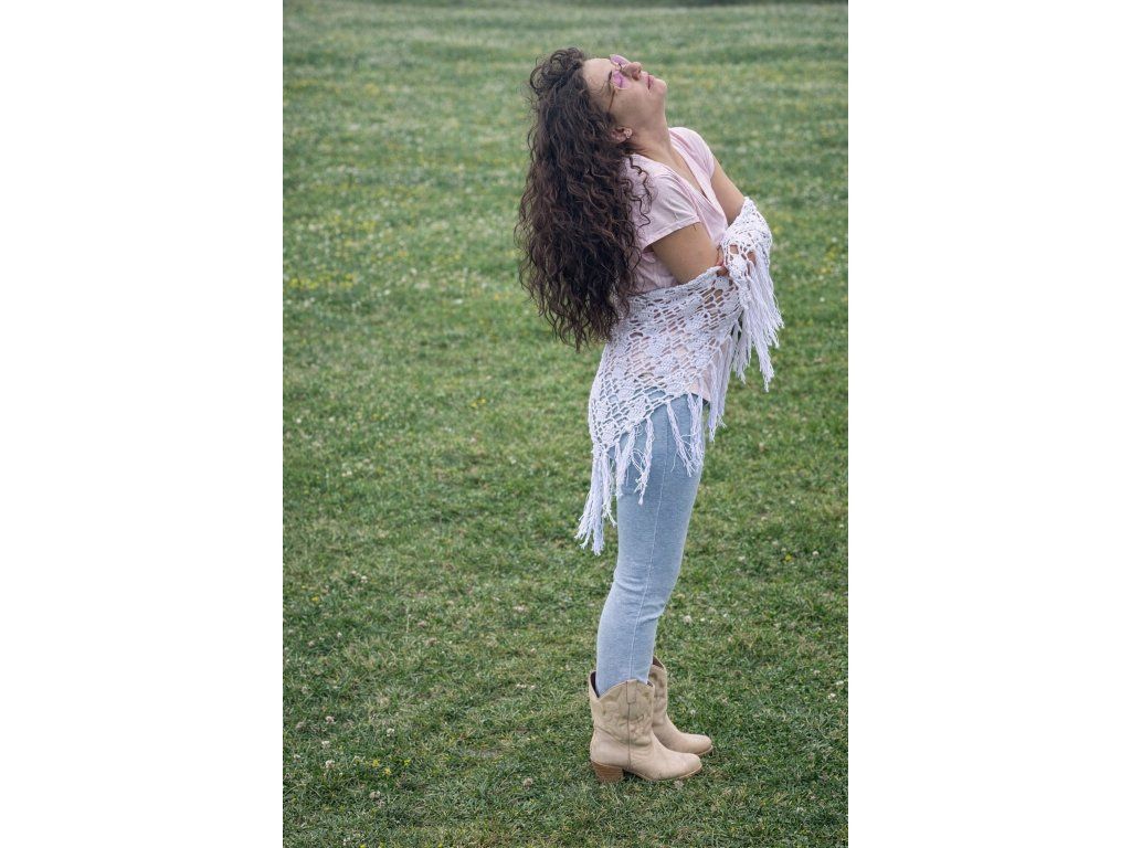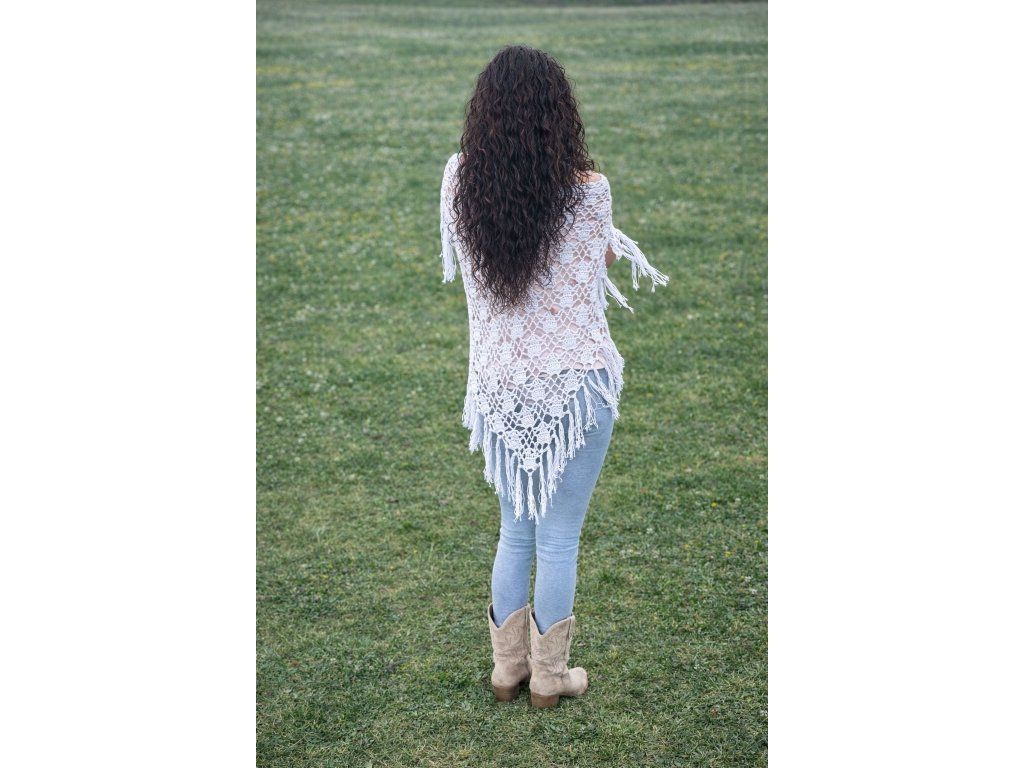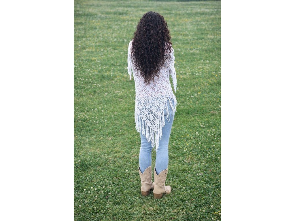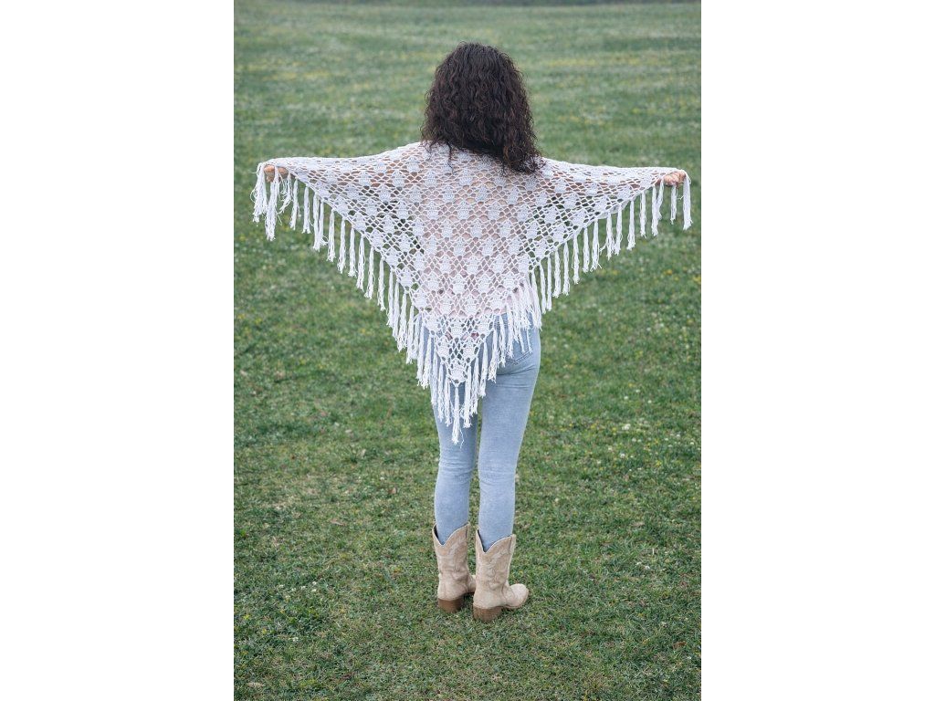 Ručně háčkovaný vzdušný šátek ze 100% bavlněné příze.