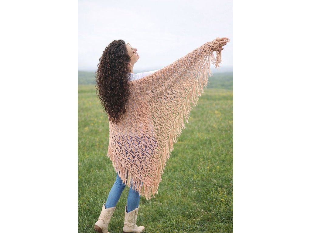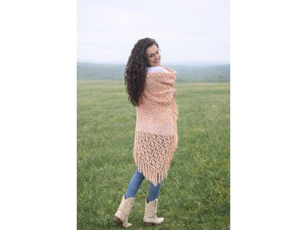 Ručně háčkovaný šátek ze světle meruňkové 100% bavlny jako doplněk k svatebnímu boho oblečení nebo jako letní doplněk přes plavky.