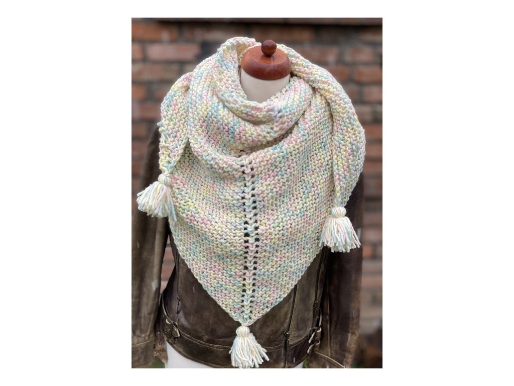 Tento šátek je upleten s láskou pro ženu nebo dívku milující jemné sladké barvičky.Vlna použita na tento šátek má jedinečné vlastnosti té nejvyšší kvality,kterou na trhu lze najít.