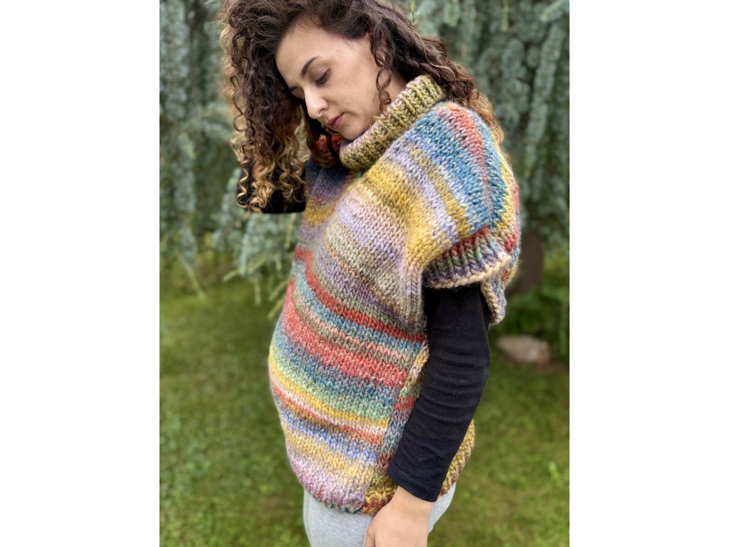 Ručně pletená vesta s rolákem a zajímavě řešeným véčkem je supr doplněk pro podzimní chladná rána nebo večery.
